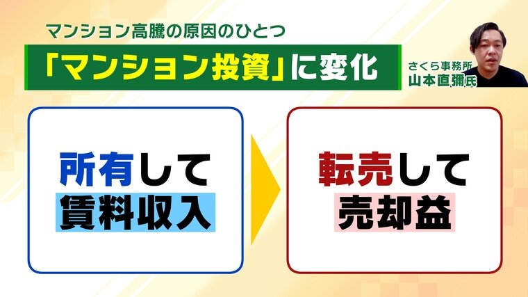 この値上がりについて、さくら事務所の山本氏は「マンション価格はバブル景気以降落ち着いていたが、少し前から右肩上がり」していると指摘。