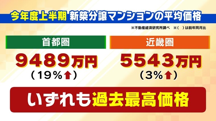 高騰続くマンション。今年度上半期の新築分譲マンションの平均価格は首都圏・関西圏ともに上がっていて、いずれも過去最高価格を記録しました(不動産経済研究所調べ)。