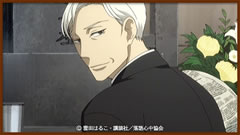 七代目八雲の墓前で手を合わせる八雲は、背後から話しかけられた松田の声に振り向くと、静かに微笑む。