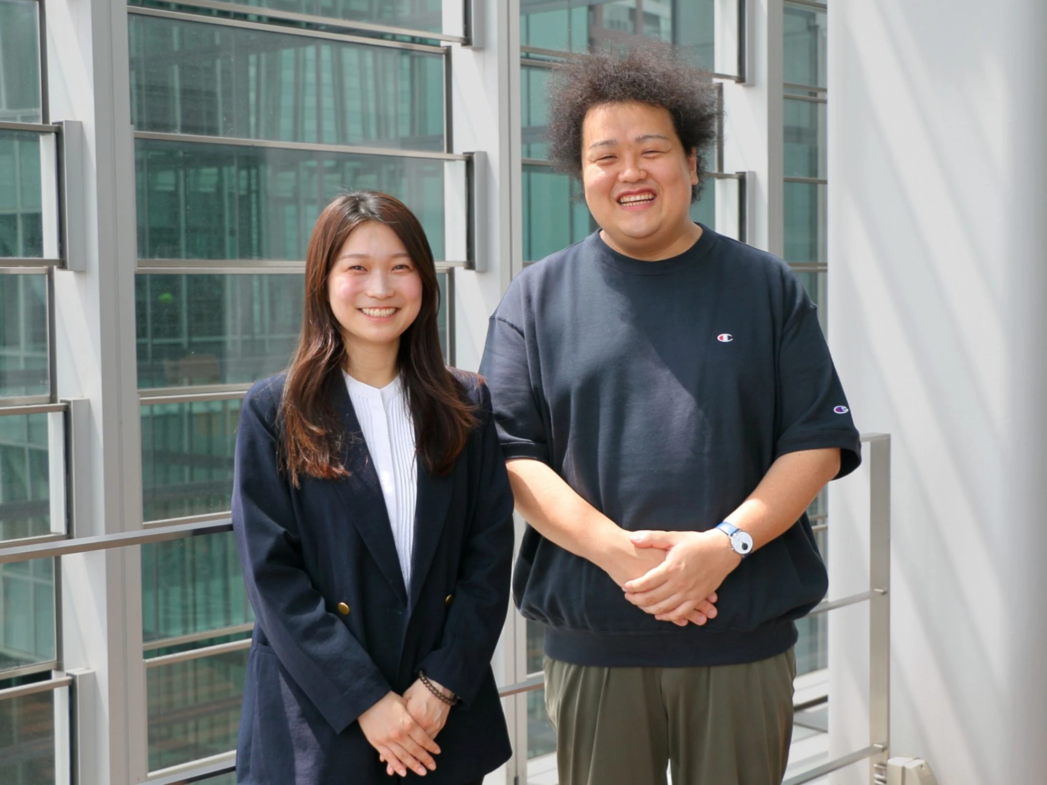 就職活動中、MBSの2次選考で私の面談を担当してくれたのが北川さんでした。 一番印象に残っているのは、アフロ(先輩のくせっ毛)。ただでさえ緊張している中、アフロ髪にスーツの面談員ということに驚きはしたものの、話しかけてくれた雰囲気がすごく柔らかくて、「こんな先輩がいる会社なら働いてみたいかも」と感じたのを覚えています。 入社してからは、同じ東京支社でたくさんお世話になりました。今だからこそ聞けることがあると思って、当時の面談員だった北川さんに、改めてお話を伺いました。