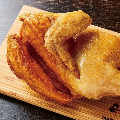 骨付き鳥:鶏のうまみがたっぷりと詰まったチキンオイルを使い、じっくりこんがりと焼き上げています。 阿波尾鳥のすだち胡椒焼き:コクとコシがあって噛むほどに美味しい阿波尾鳥の焼鳥にすだち胡椒を添えて。