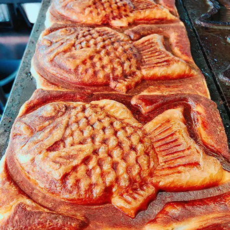 サクサク生地のクロワッサンたい焼きです。定番のあずき、カスタードからチーズケーキなど多種ご用意しております。軽いおやつにぜひお召し上がりください。