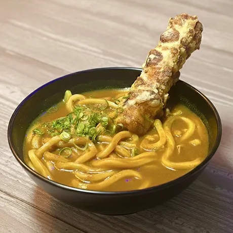四国名物「ちく天カレー讃岐うどん」は旨み深いカレー出汁と一本ちく天が魅力の温まる一杯です。ぜひご賞味下さい。