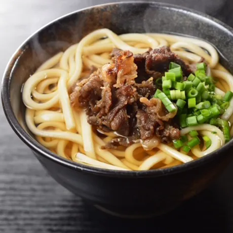 甘辛く味付けした牛肉の旨味とコクのある出汁が調合した濃厚な味わい。寒さも吹き飛ぶ熱々のこだわり肉うどんです。