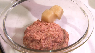 合挽肉他、しっかり氷酢たまねぎを練りこんで成型する。