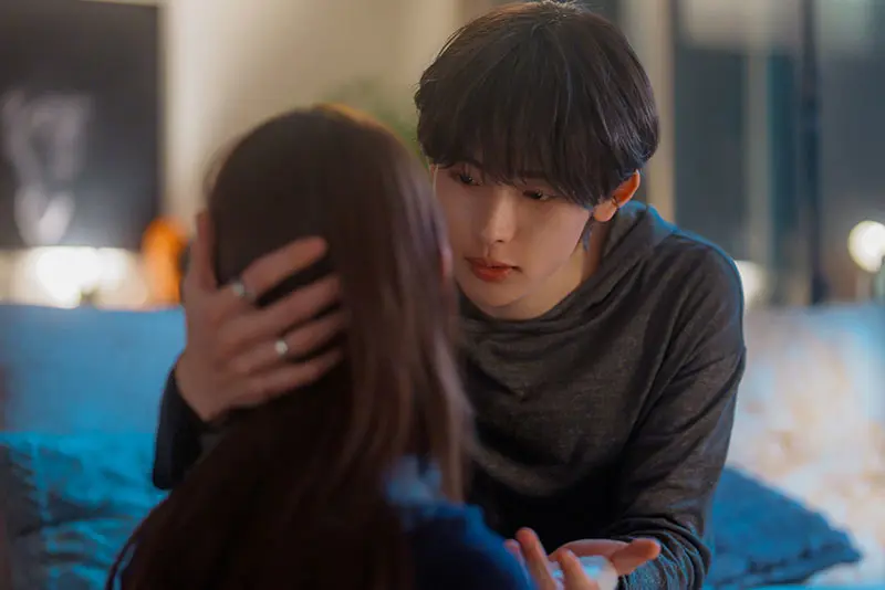 落ち込む天を見た千秋(NOA)は、彼女に近づくチャンスとばかりに優しく声をかけるが、天は純粋に励ましを受け取るだけだった。天のまっすぐさに苛立ちを隠せない千秋。さらに、撮影現場で天と恋人役の八村(八村倫太郎)が親しくなっていく様子を目にし、焦りを募らせる。