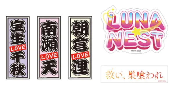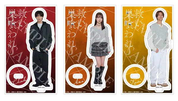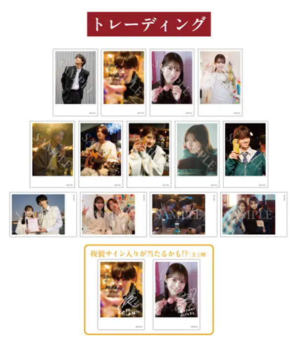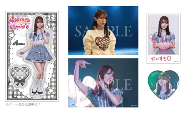 アクリルスタンド:W70×H120mmブロマイド:W127×H89mmインスタントカメラ風ブロマイド:W61×H91mm缶バッジ:W57×H53mm